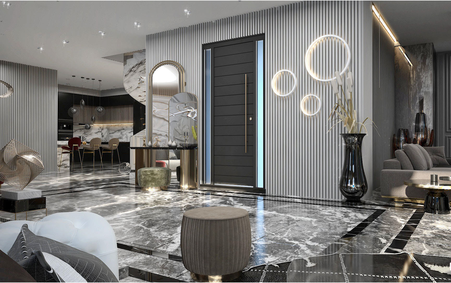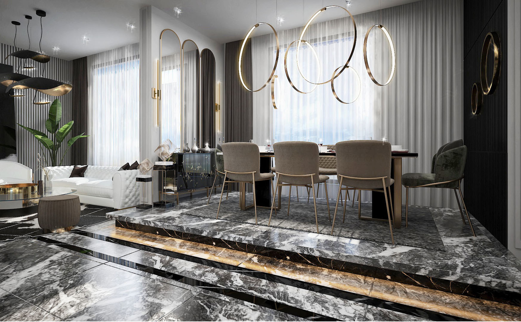 160 meter- The luxurious apartment was renovated in an neo-classic style. Landscaping, American kitchen modeling, ceiling repairs, wooden door polishing, toilet renovation, interior and exterior paintings, fencing, and flooring were all expertly renovated.