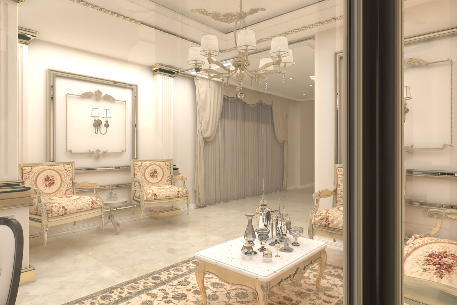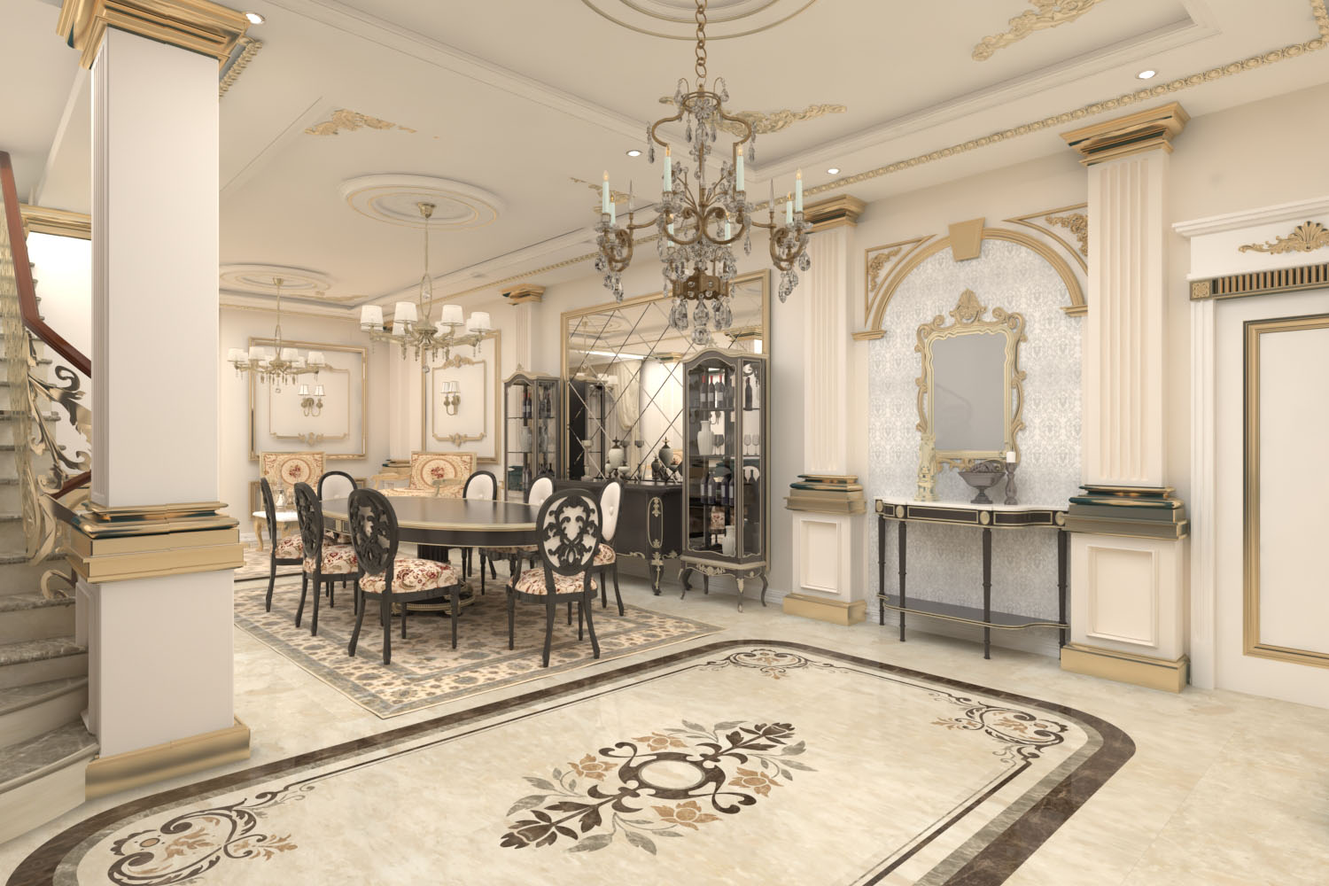 250 meter- The duplex villa was renovated in classic style. Corridors were accentuated as gallery spaces and mimicked with marble tiling. Interiors are lit up with various claddings and LED lighting enhancing each space uniquely.
