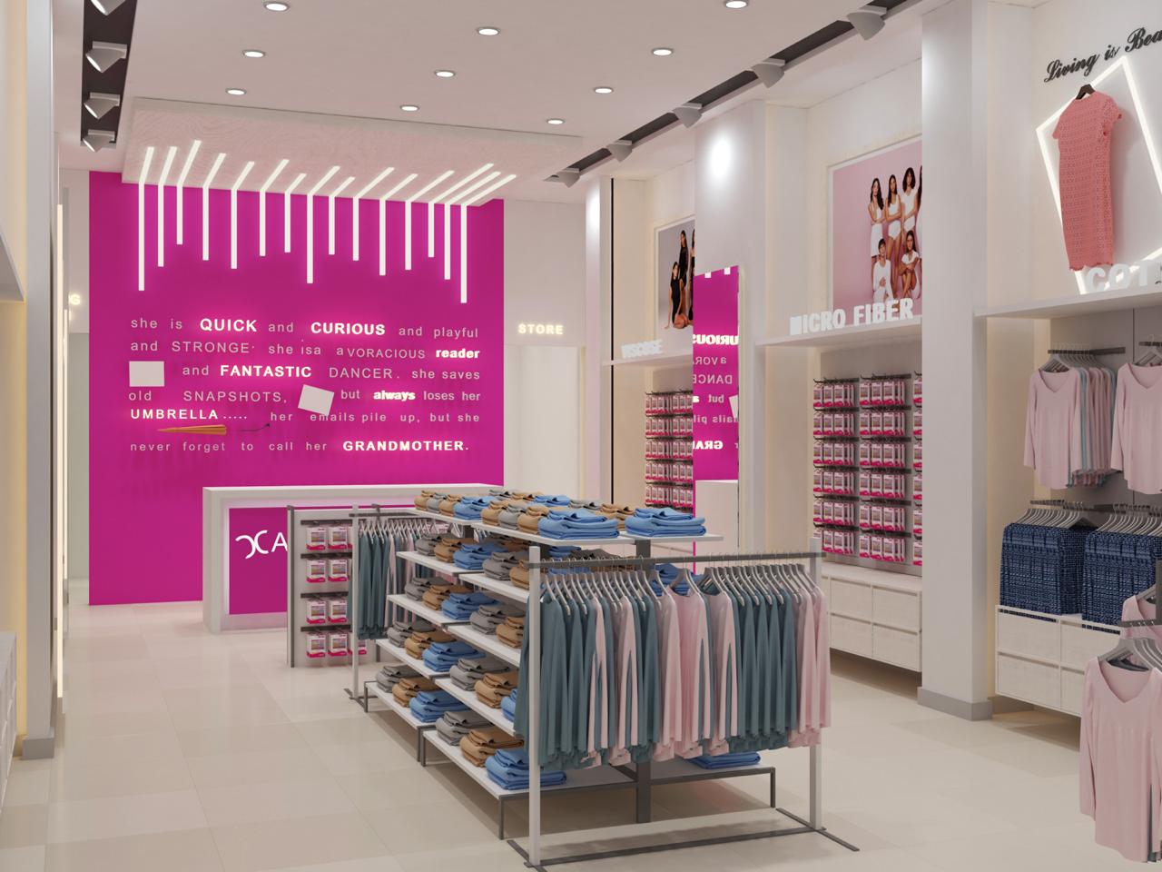 As the store is aimed at young ladies, the design incorporates a modern youthful spirit by using simple materials for the floors, walls, and ceilings, as well as unique designs for display units on the walls or inside the store. Pink and white natural marble are prominently displayed in display units to enhance the design concept. Elevation and interior wall claddings in white painted wood interspersed with straight lines of indirect light to ensure clients' feminine free spirit.