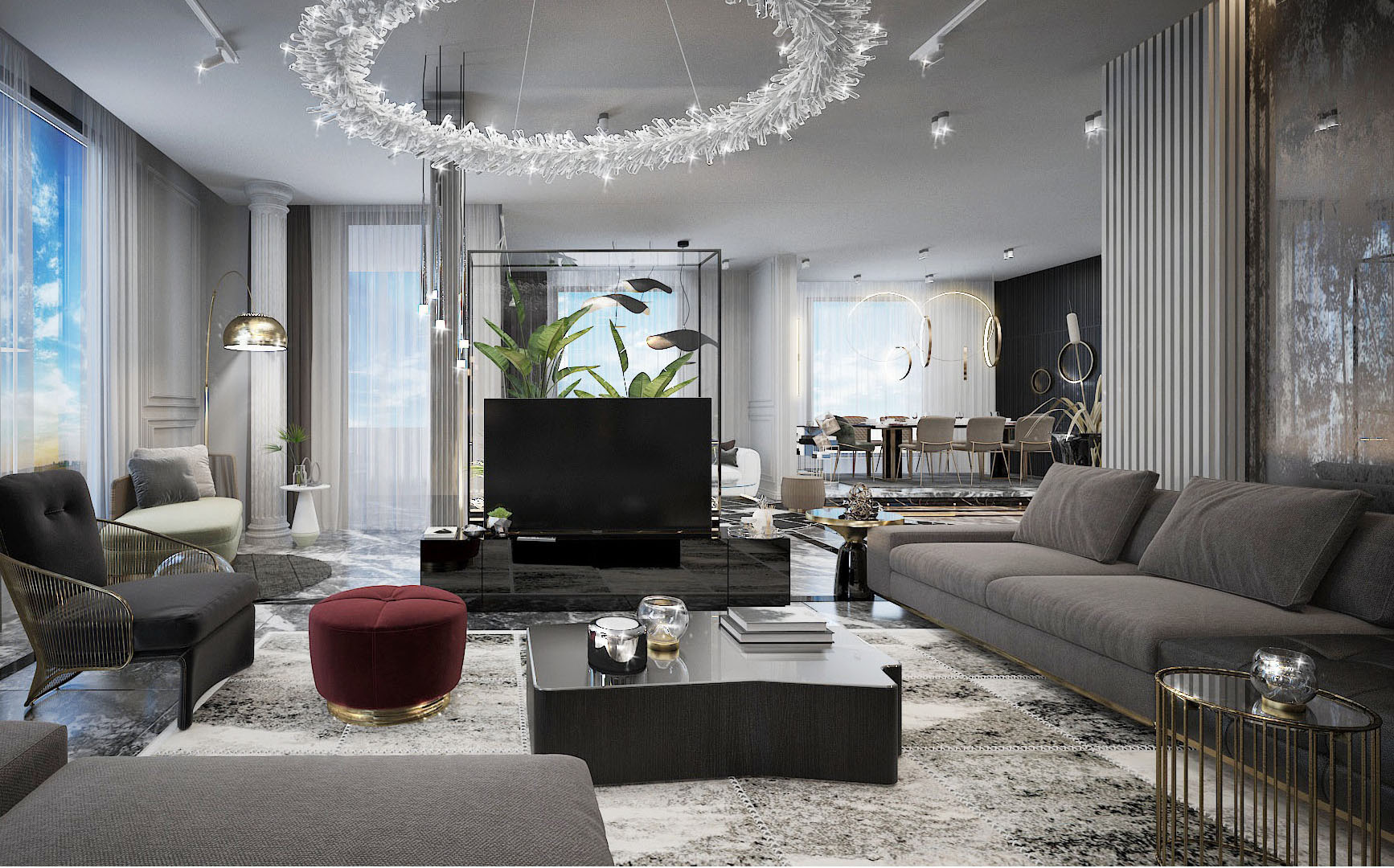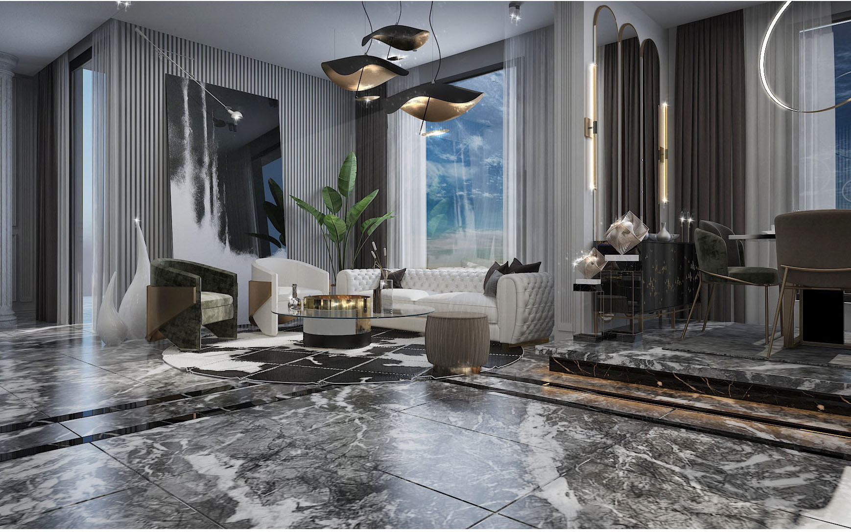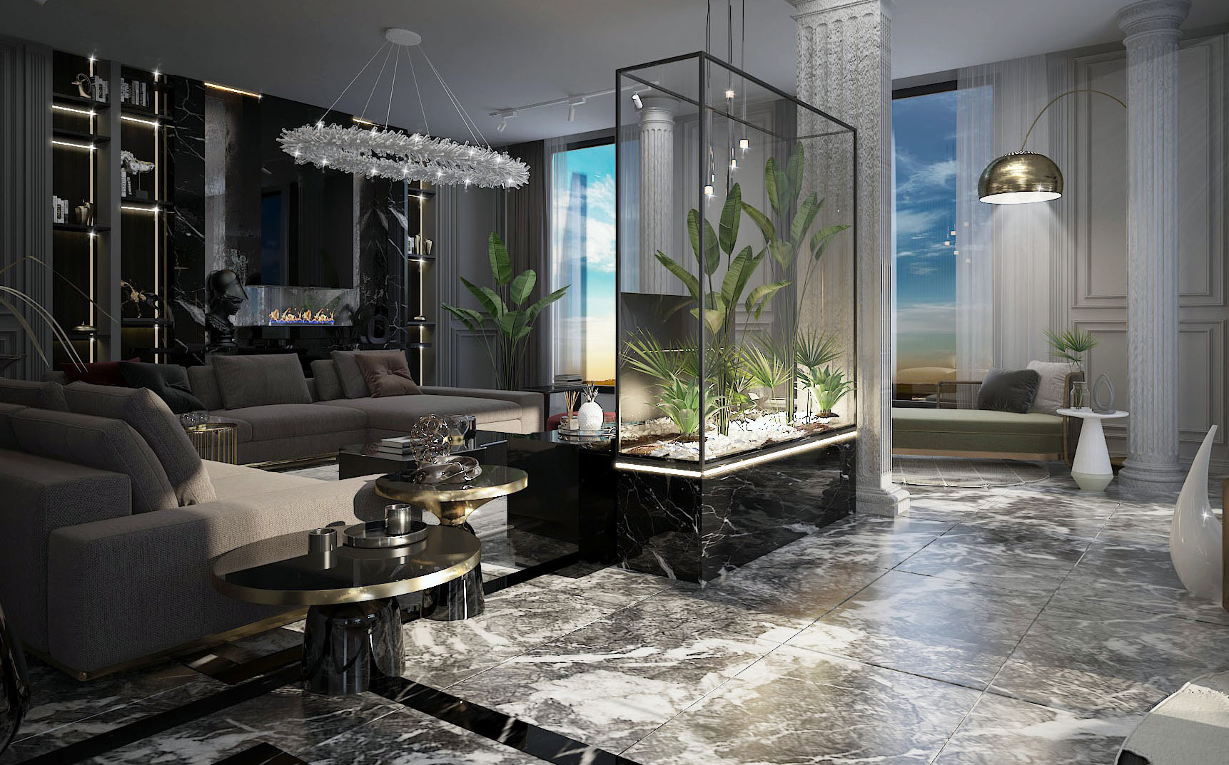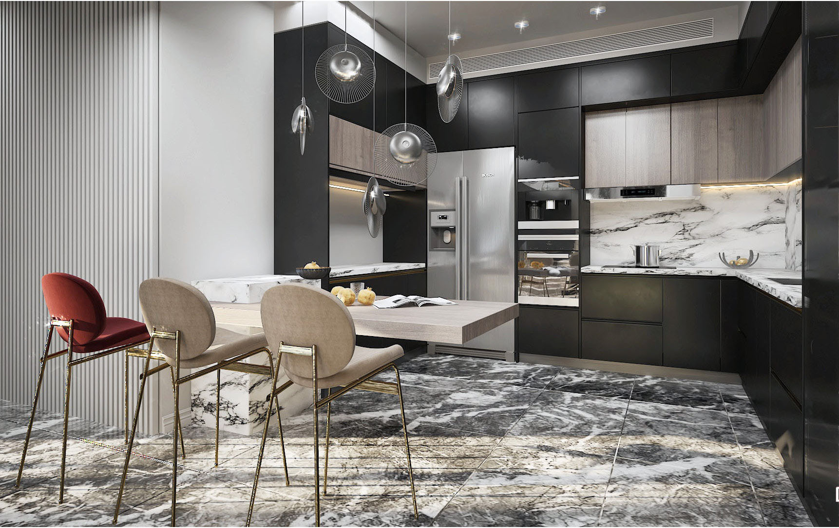 160 meter- The luxurious apartment was renovated in an neo-classic style. Landscaping, American kitchen modeling, ceiling repairs, wooden door polishing, toilet renovation, interior and exterior paintings, fencing, and flooring were all expertly renovated.