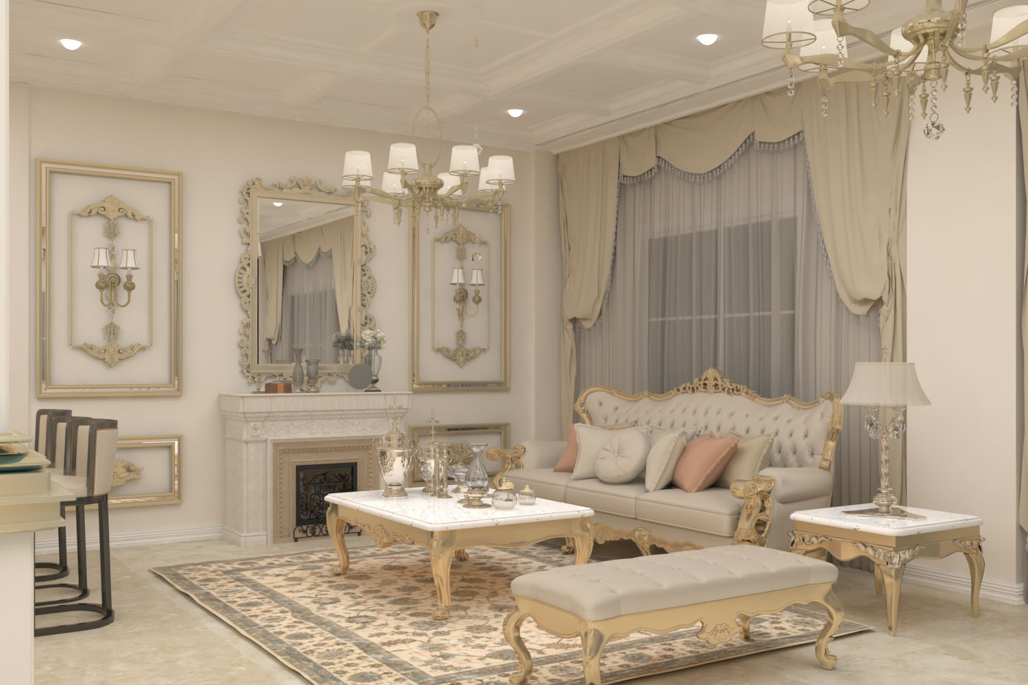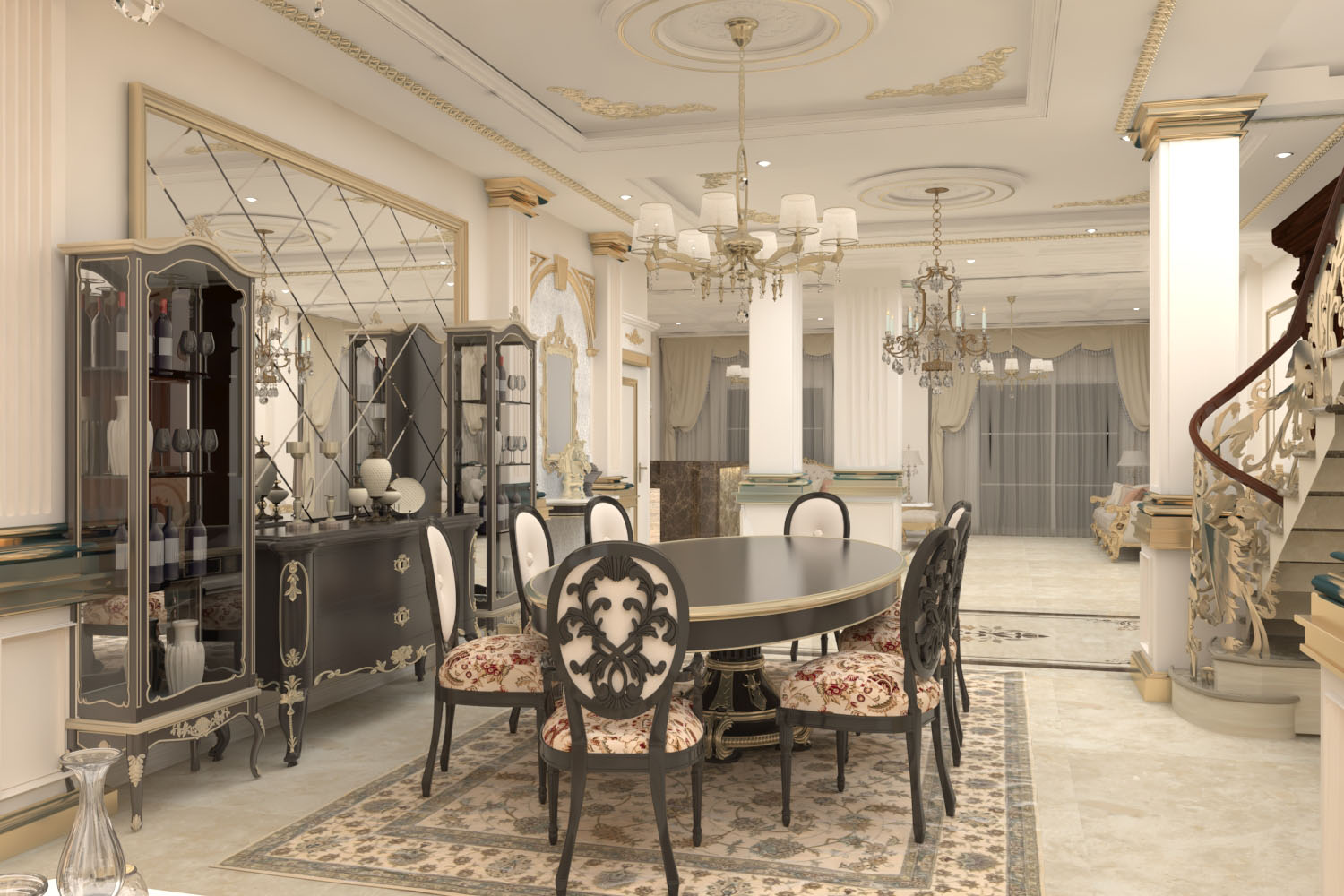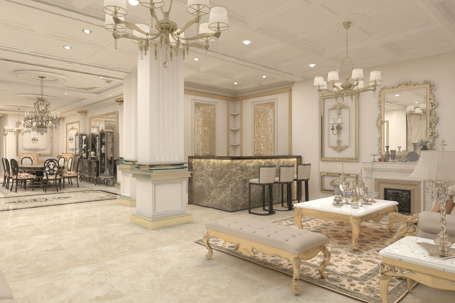 250 meter- The duplex villa was renovated in classic style. Corridors were accentuated as gallery spaces and mimicked with marble tiling. Interiors are lit up with various claddings and LED lighting enhancing each space uniquely.