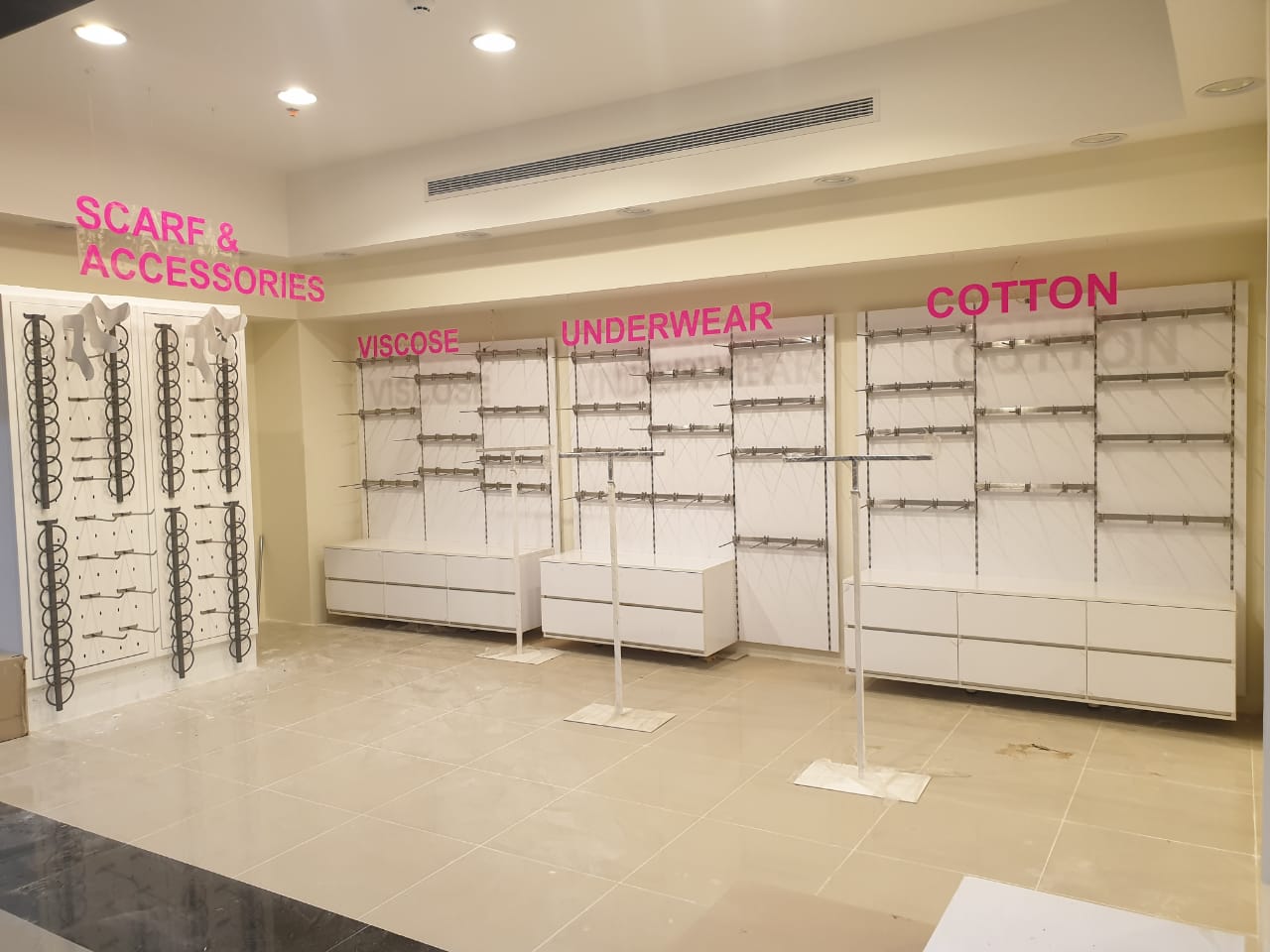As the store is aimed at young ladies, the design incorporates a modern youthful spirit by using simple materials for the floors, walls, and ceilings, as well as unique designs for display units on the walls or inside the store. Pink and white natural marble are prominently displayed in display units to enhance the design concept. Elevation and interior wall claddings in white painted wood interspersed with straight lines of indirect light to ensure clients' feminine free spirit.
